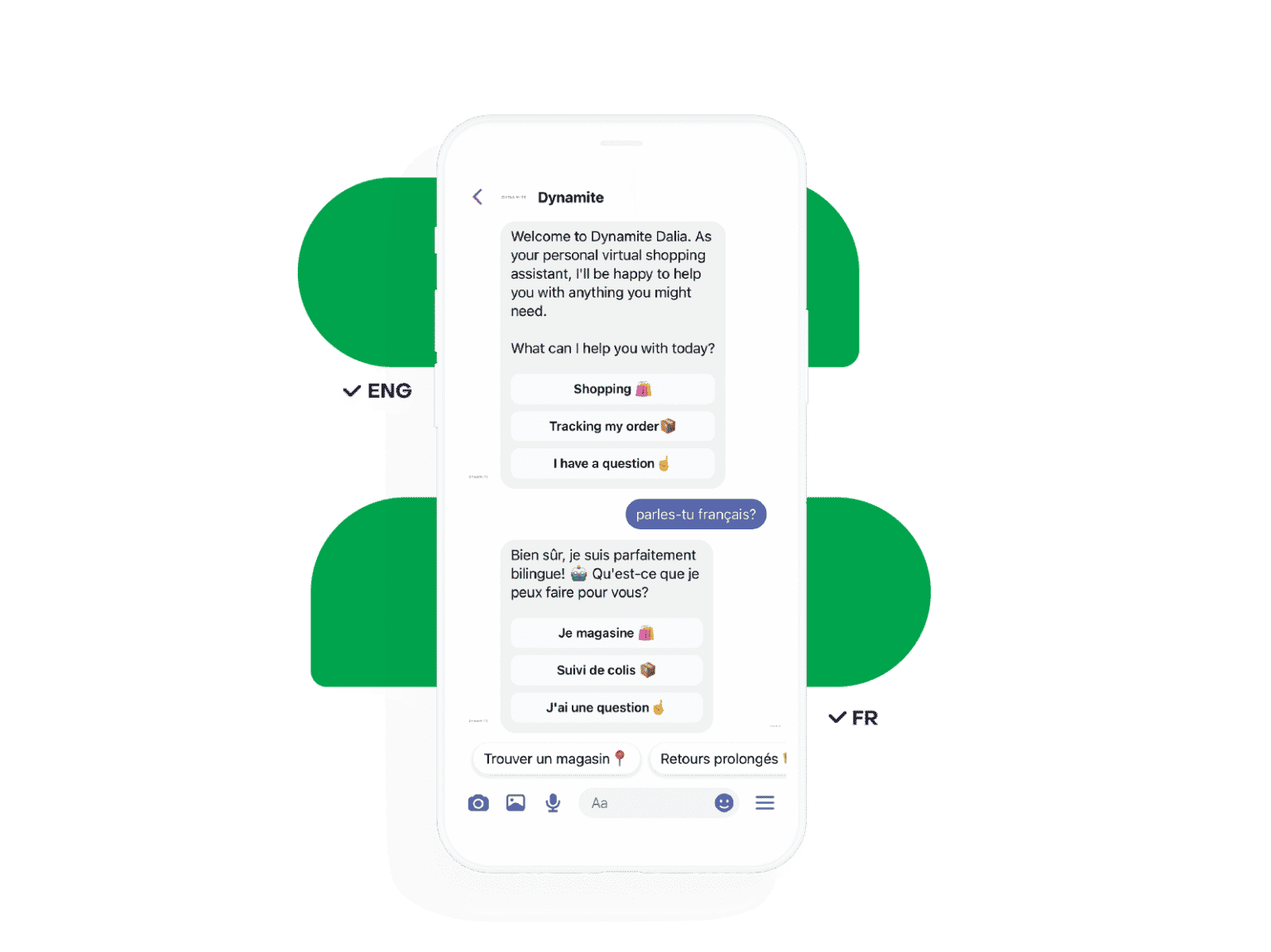Here’s an example of an eCommerce chatbot offering multiple language options.