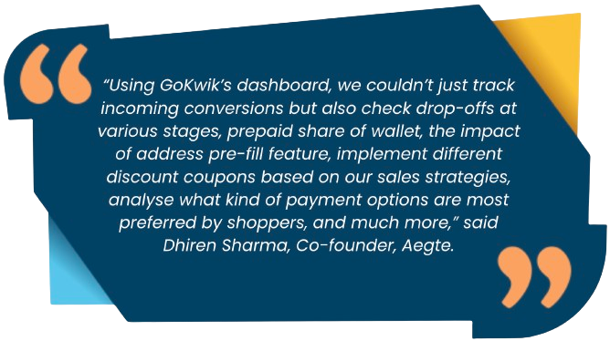 While there were some solutions on the market that enabled Aegte to streamline its checkout process to some extent, the drop-off rate and conversion rate continued to decline. This is when they got introduced to GoKwik's solutions and decided to give it a try.