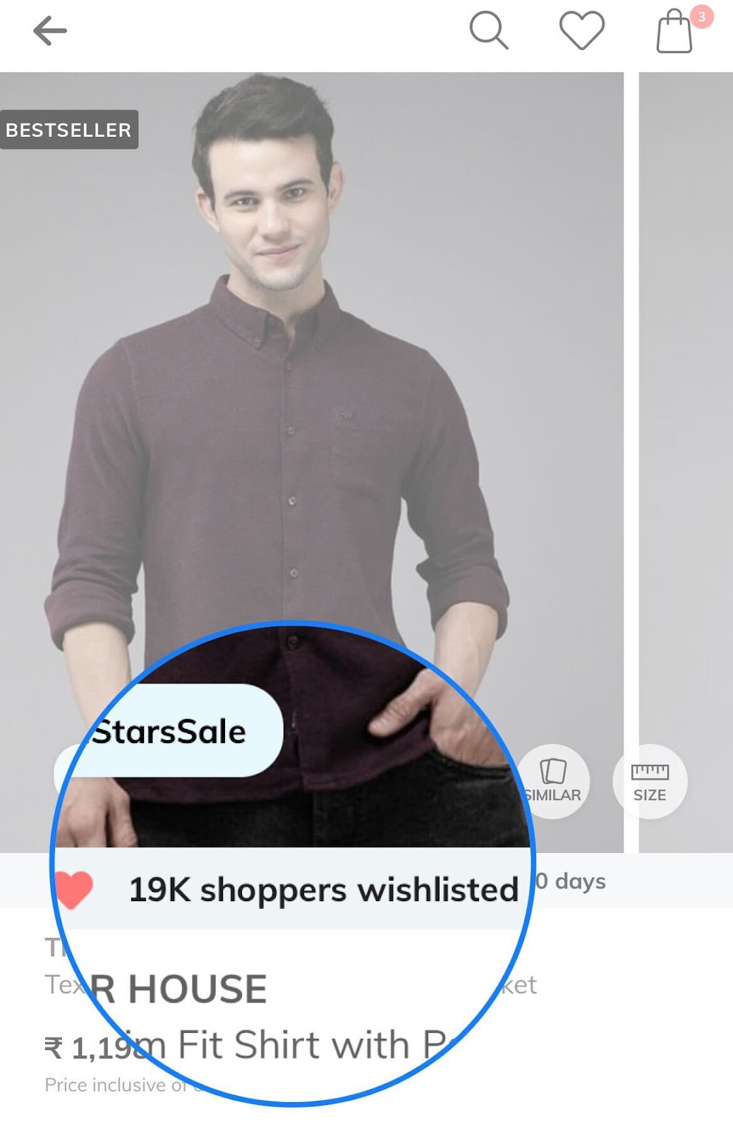 When a potential customer is in the consideration phase and on the product page, showing how many people are currently viewing the item or have it wishlisted can help nudge them toward making a purchase. Here’s an example from AJIO.