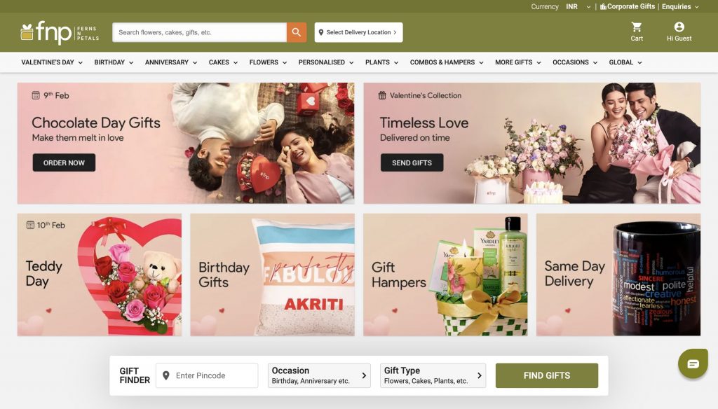 Ferns N Petals has done in the above image. Its home page is reminding shoppers about the upcoming/ongoing season of love and is nudging them to buy something special for their loved ones before the sale ends.