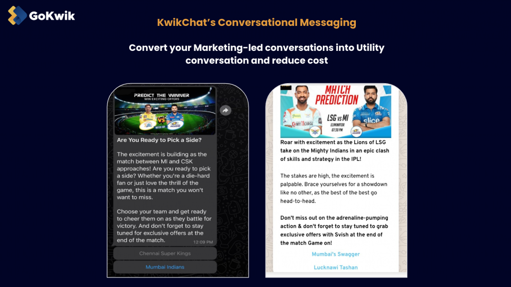 To give you an example, Kwik Engage recently enabled many of its merchants to run IPL promotional campaigns via WhatsApp to increase customer engagement and sales.